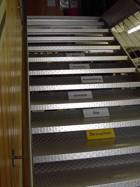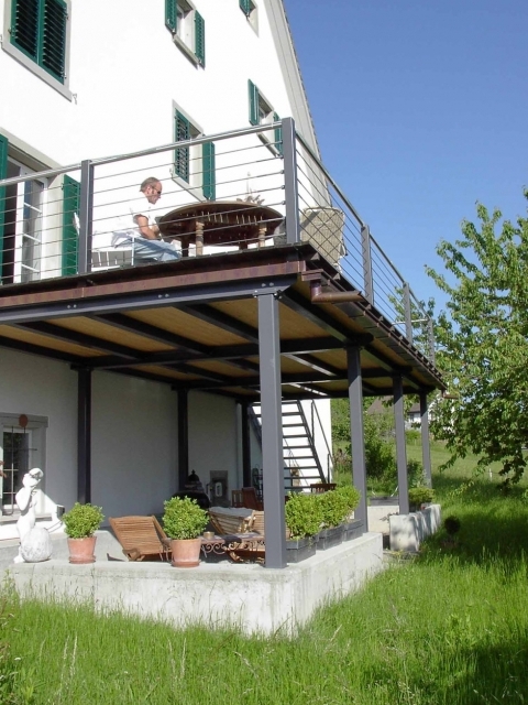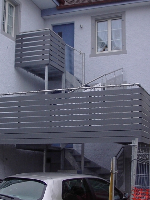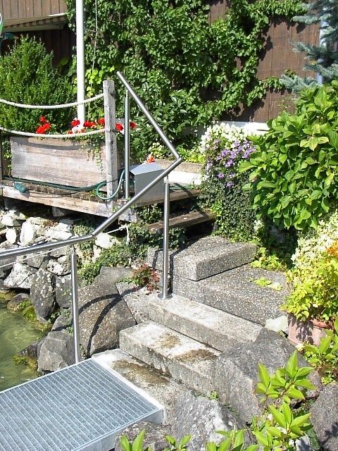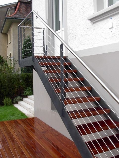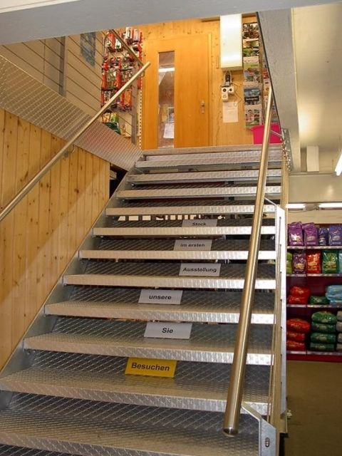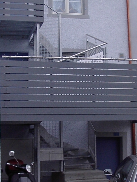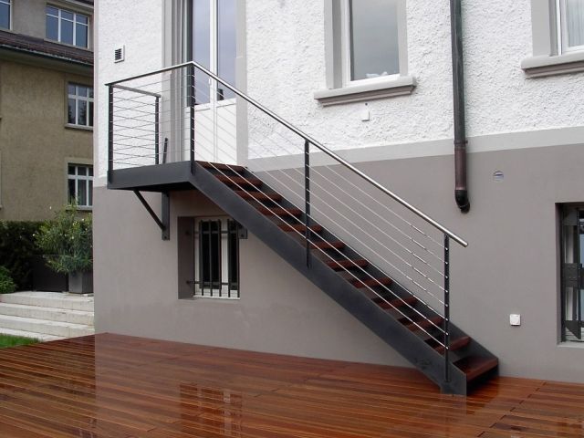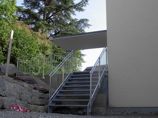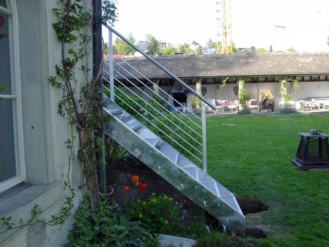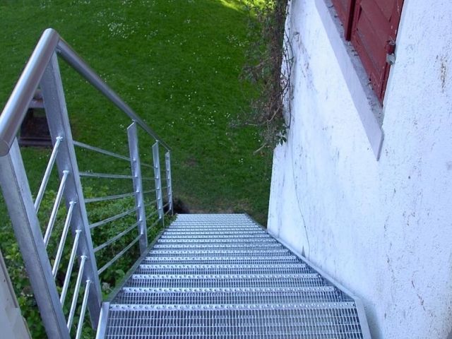 Gitterrosttreppe mit Geländer und Inox Handlauf