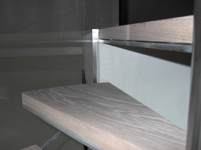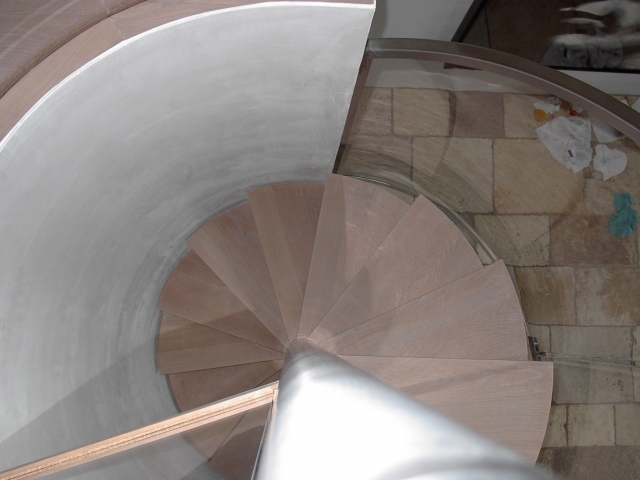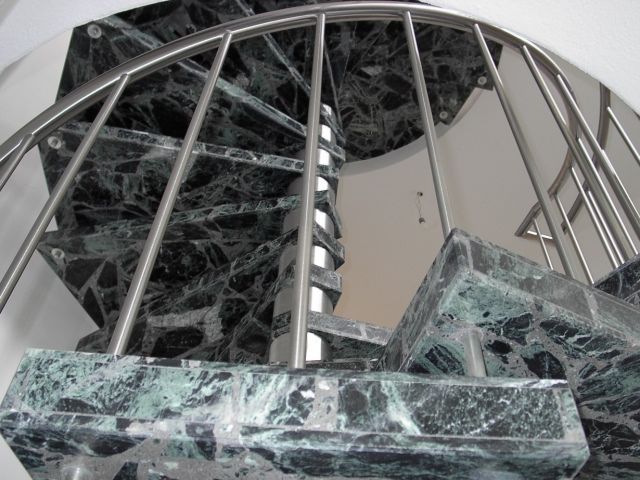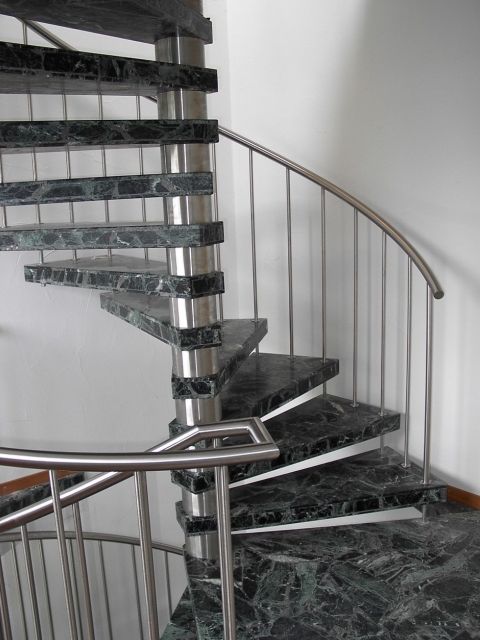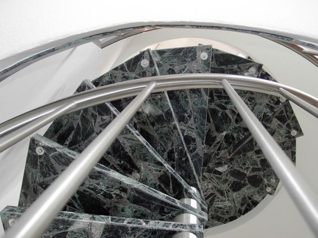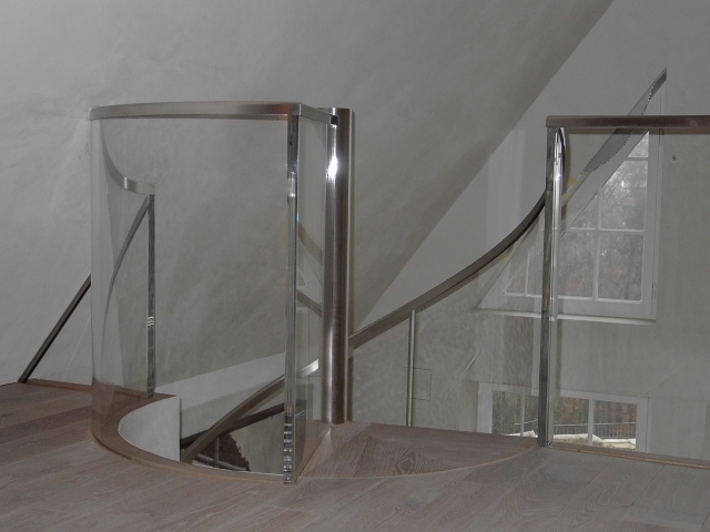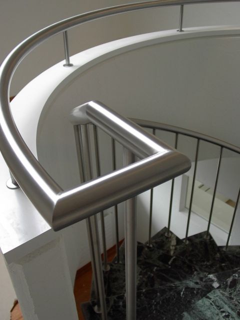 Spindeltreppe mit CNS Handlauf, Acrylglasfüllung
