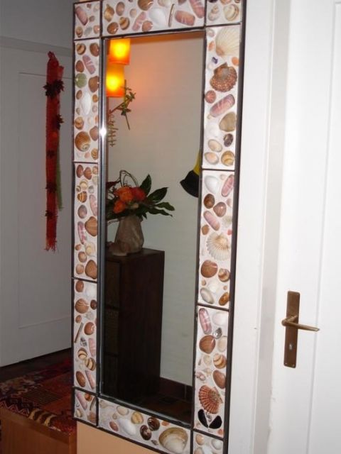 Aufgrund einer Skizze haben wir den Rahmen für diesen Spiegel hergestellt, der dann von den Kindern mit Souvenirs aus den Ferien gestaltet wurde.