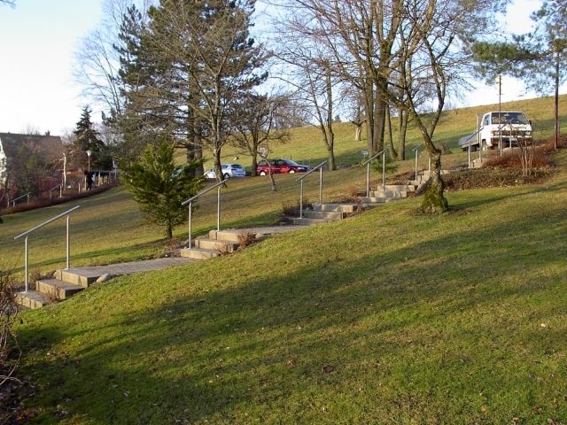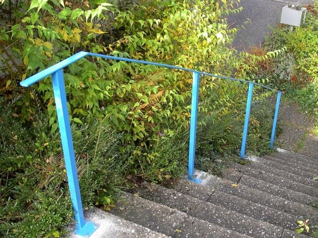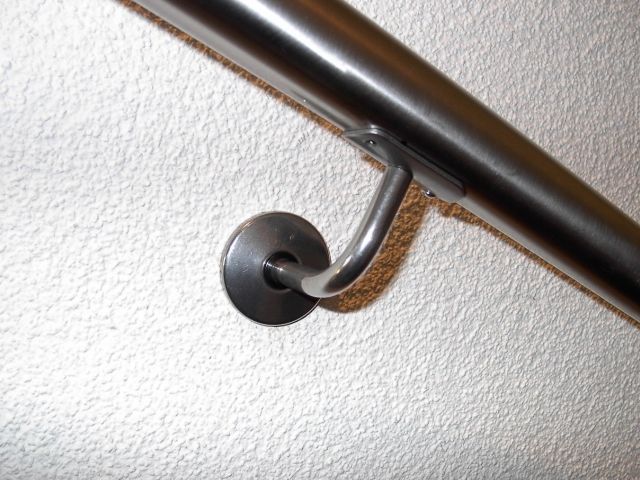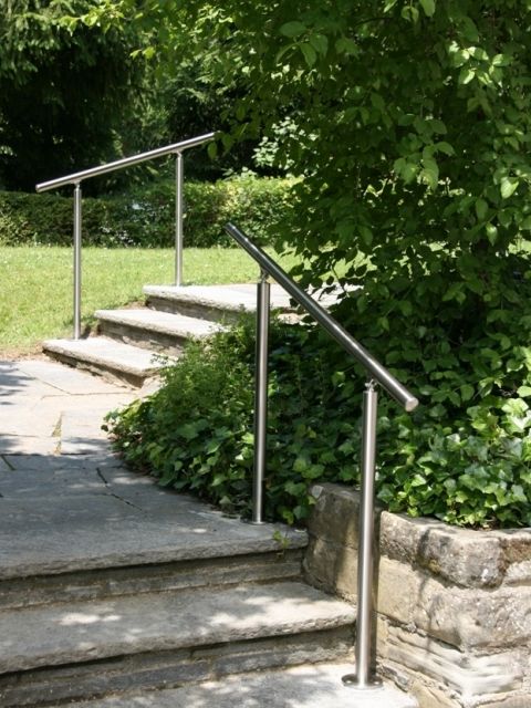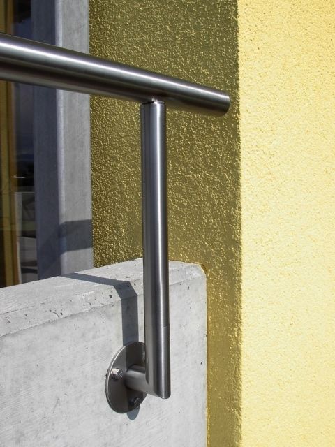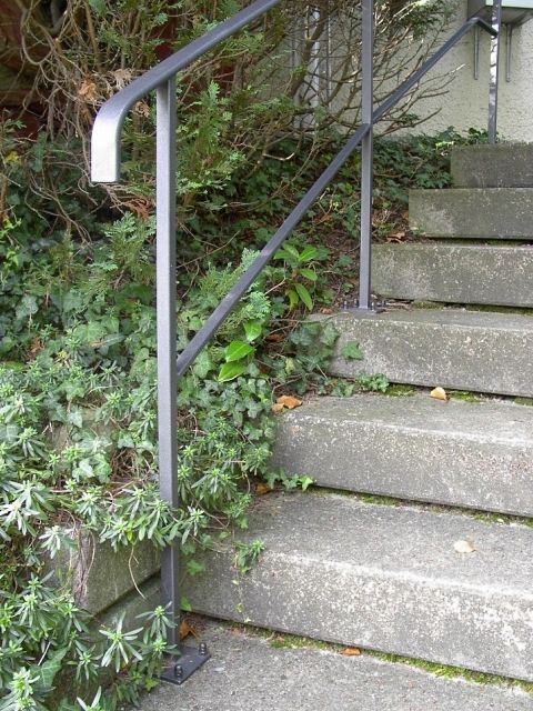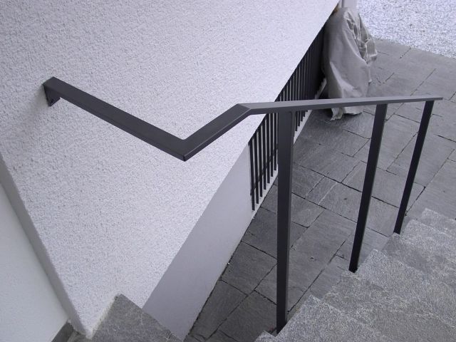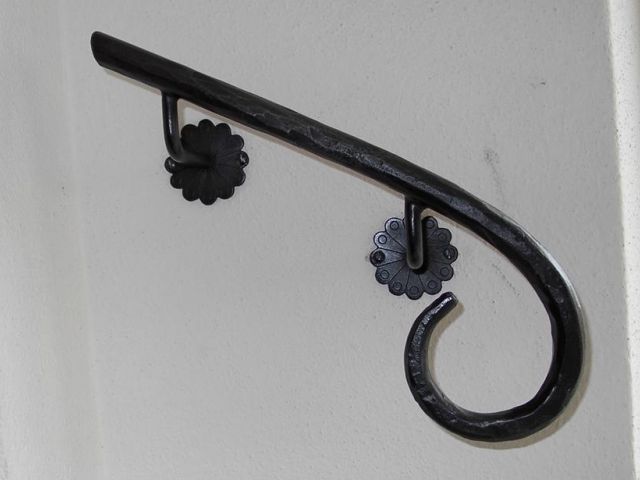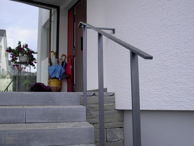 Kleiner geschmiedeter Handlauf als Halt für den Eingangsbereich mit wenig Stufen
