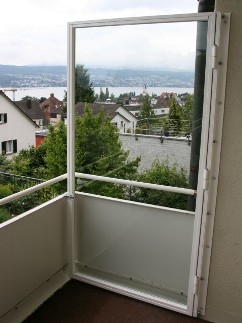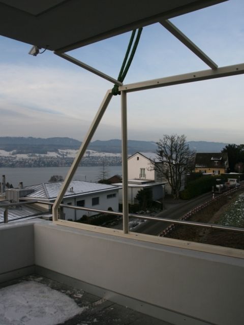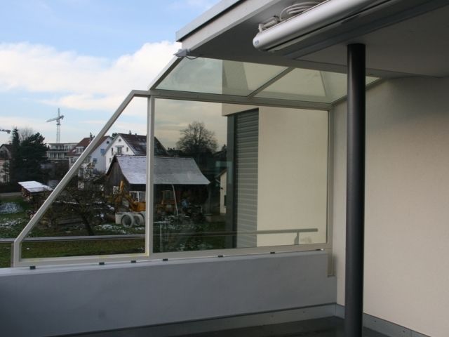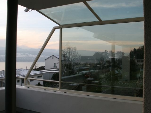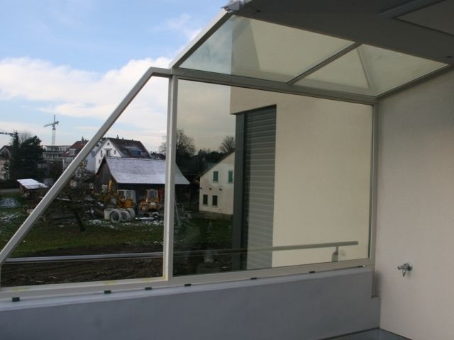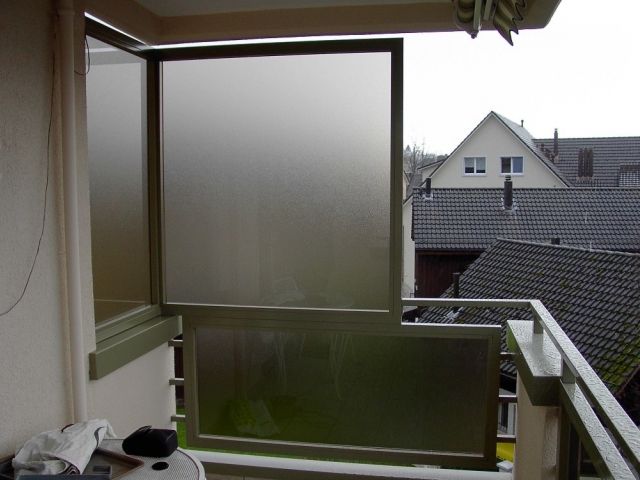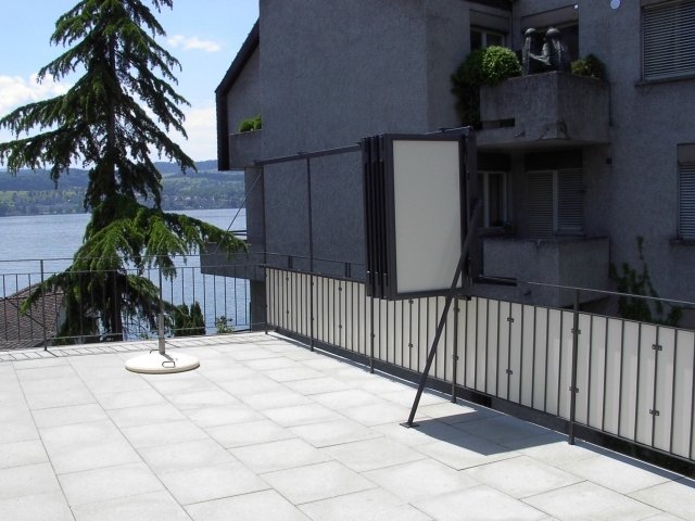 Ausklappbare HPL-Platten und Geländer, als Wind und Sichtschutz